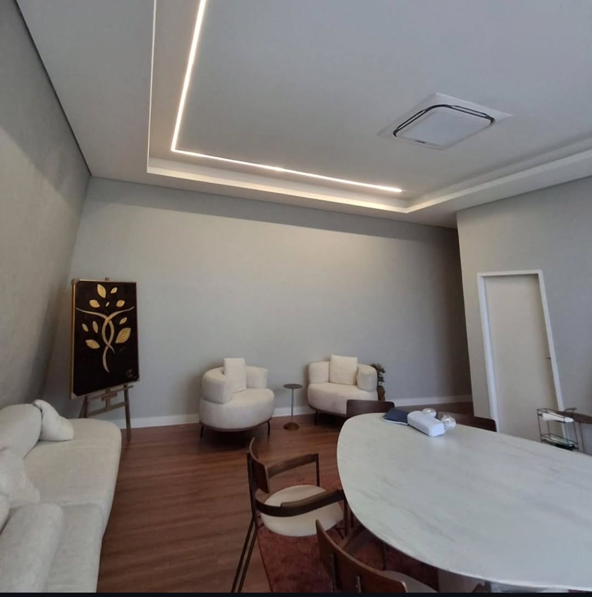 Iluminação embutida e linear em LED, valorizando o ambiente com sofisticação e funcionalidade.
