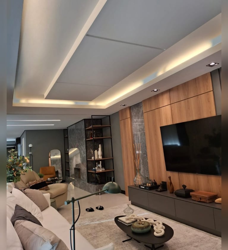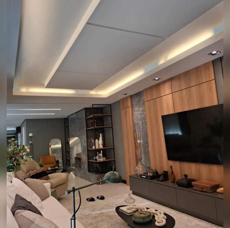 Forros em gesso drywall com design moderno, rebaixamento e soluções personalizadas para cada ambiente.